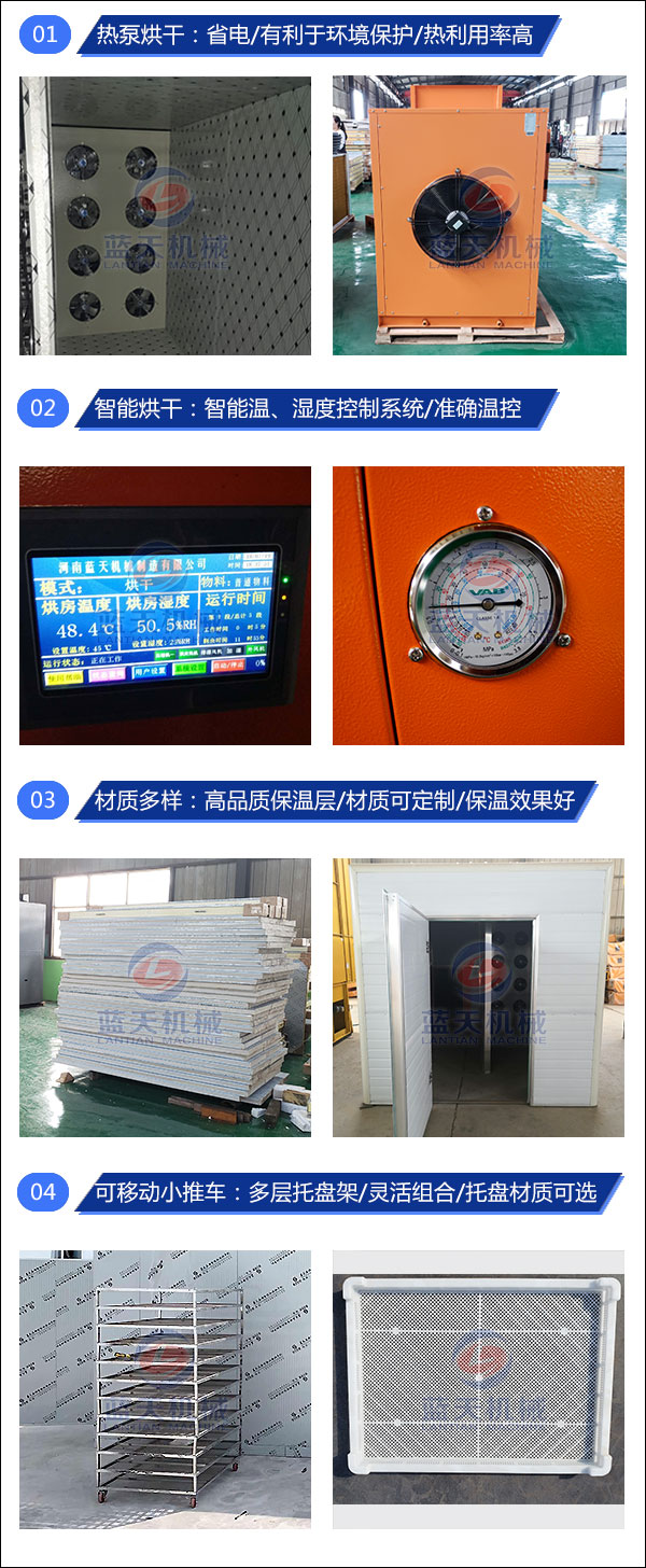 山药干燥设备采用热泵空气能加热,对于脱水蔬菜、中药饮片等类含水率高、而温度不允许高的物料尤为合适;山药干燥机具有干燥速度快、蒸发强度高、产品质量好的优点。