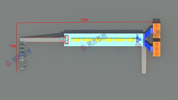 需要烘干的山药会经过上料输送机均匀地送入烘干主机内部,会在连续式山药干烘干机内部多层不锈钢网带的传送下,循环翻转,与此同时,热源提供的热量,会在引风机的作用下,以热风的形式进入网带式烘干主机底部,热风会自下而上的逐层穿过不锈钢网带山药层,带走其中的水分,从烘干主机顶部排出,达到烘干山药的效果。